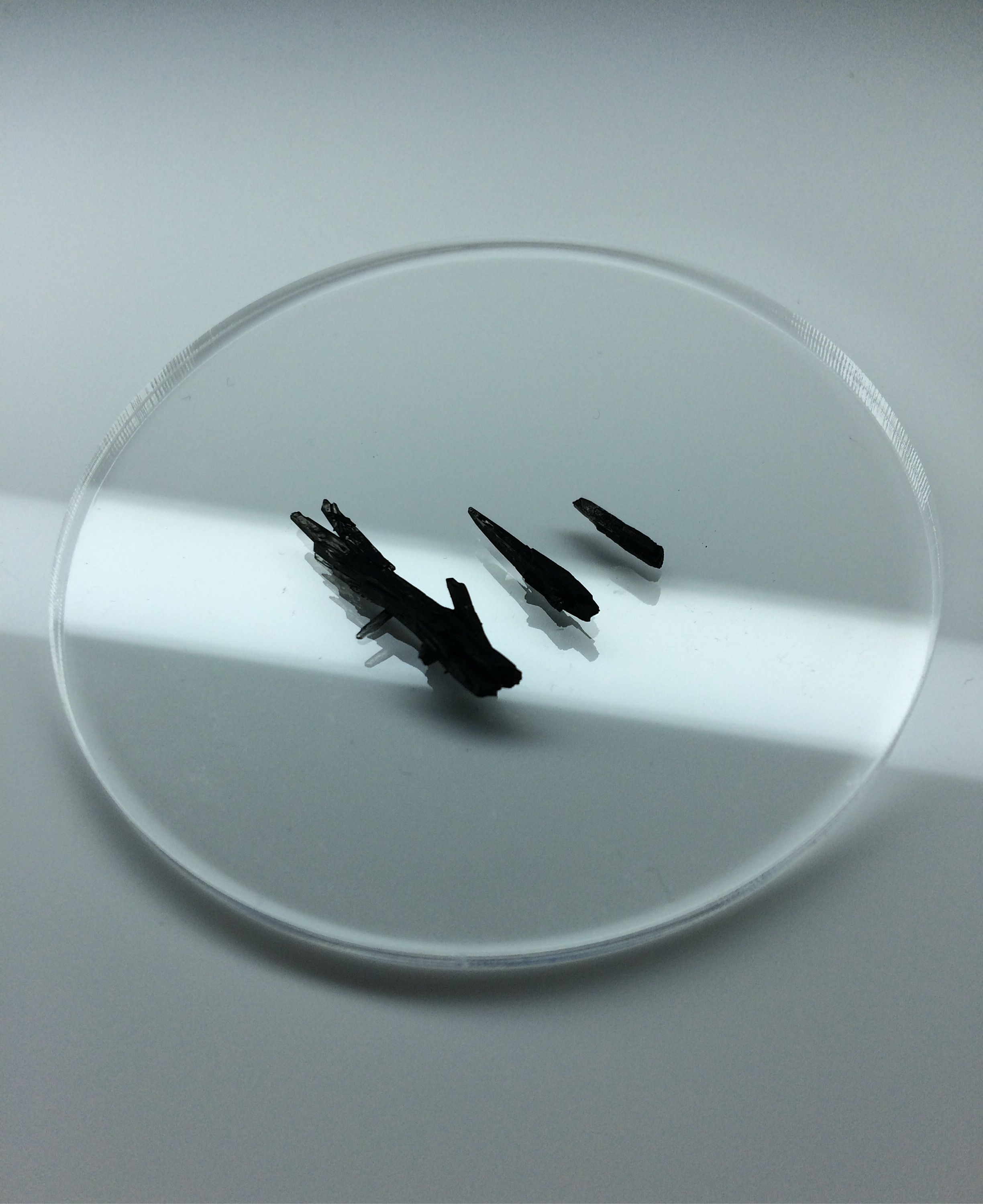 While this project is mainly inspired by the raw beauty of nature, Amorphous Allotropes combines universal principles of physics with digital technology, proposing new forms of expression using crystal sensors as new musical instruments focused on sonic interactions. Amorphous Allotropes were grown on varied structures and sizes, including soft materials such as textile and foam, to laser cut glass or plastic, as well as a standalone crystal element.