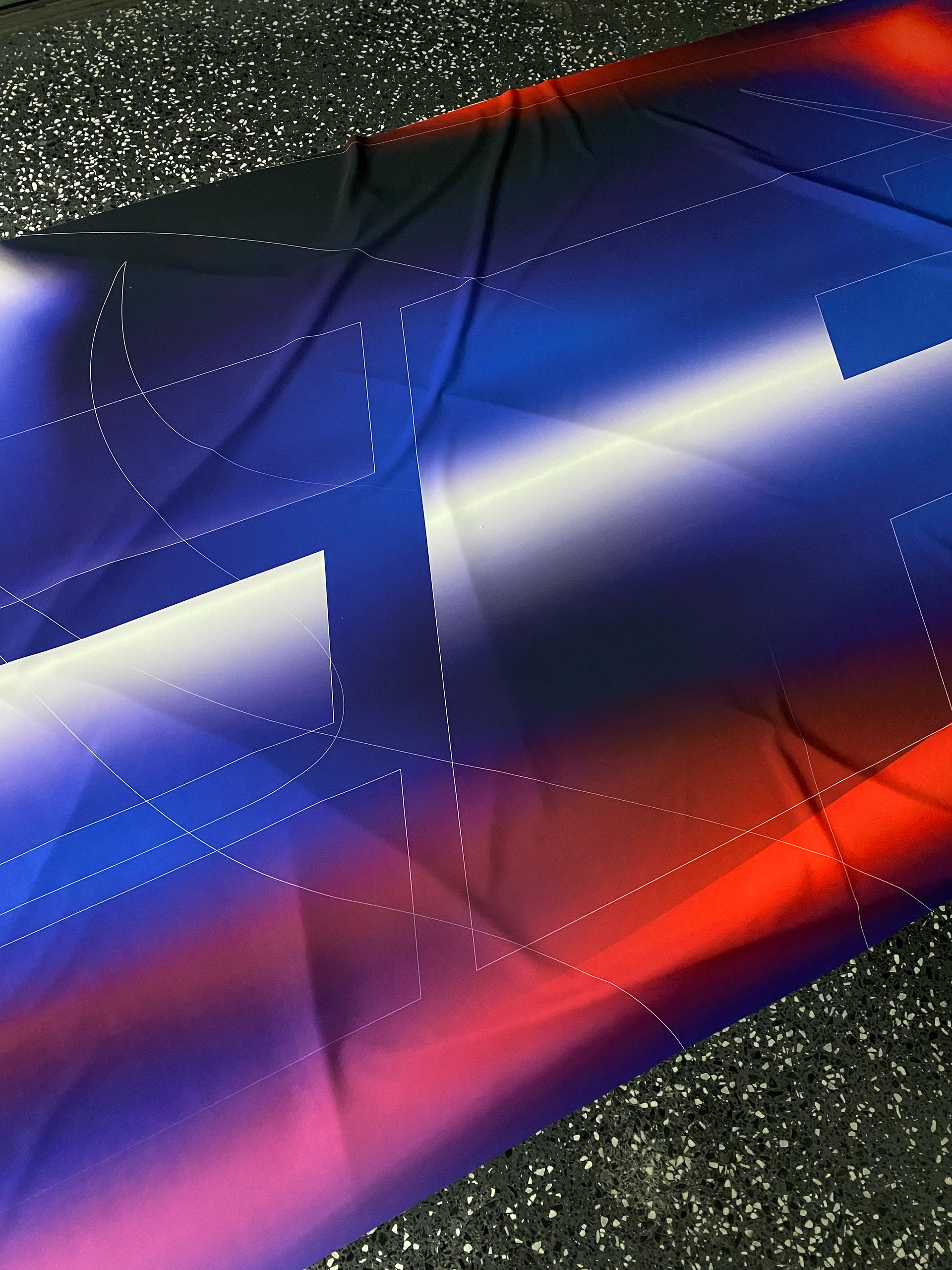 The exhibition explores the heights and depths of the invisible substances around us, where the several meter long sublimated and meticulously pleated soft monolith FEELER, receives and extends out to become an instrument which unveils the spatial quality of LRRH_AERIAL – the tone-of-place, a perceptual space is experienced by the visitors. The soft monolith is tuned with augmented material sensitivity to electromagnetic tides flowing within the space and amplified into audible range. In FEELER, the artists bring attention to the continual flux of energy and vibrant materiality by sculpting the air, combining concepts of space, energy, matter and time into a multisensorial soft sculpture. This self-generating soundscape is autonomous and perpetually modulated by the electromagnetic activity occurring within reach of the monolith’s soft antennae.