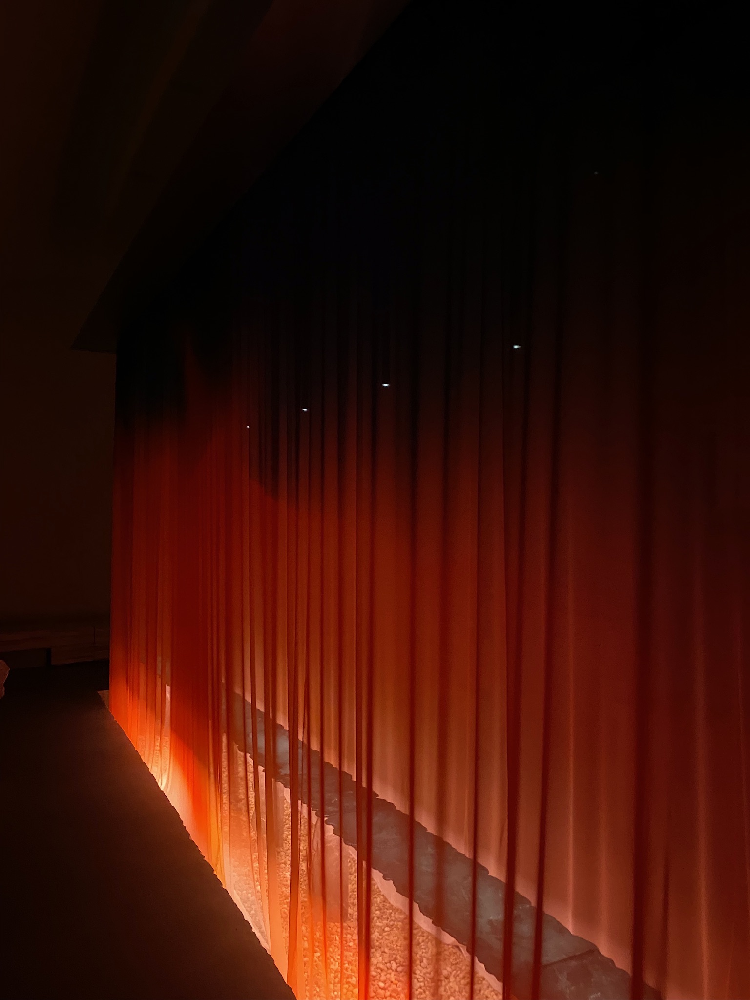The core concept of ONYX ÆTHER—developed by URBA and EJTECH in close collaboration with the client—was to create a dynamic, ever-evolving space. A timeless, multi-layered environment, poetically weaves together universal themes around transience and impermanence. As the evening unfolds, the space morphs seamlessly, guiding guests on an immersive journey from plate to palate, engaging their senses and intuition in a continuous flow of experience. At its core stands a soft monolith—a striking, large-scale textile sculpture animated by a six-motor resolution, unfolding into fluid, rippling compositions. This dynamic centrepiece shifts the spatial atmosphere, engaging the senses and intuition, while offering a new way to experience the dinner’s themes and narratives.